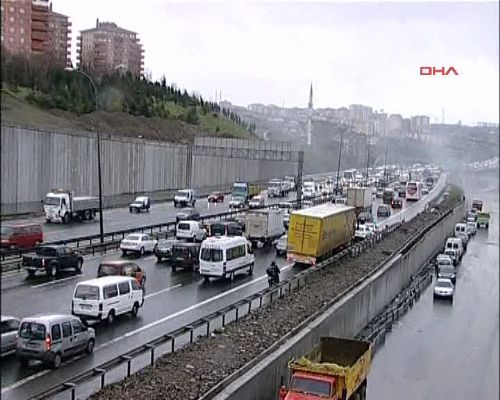 Yangın kontrol altına alınırken TEM oto yolunu kullanan meraklı sürücüler yüzünden TEM oto yolunda trafik durma noktasına geldi. Ümit Türk/DHA